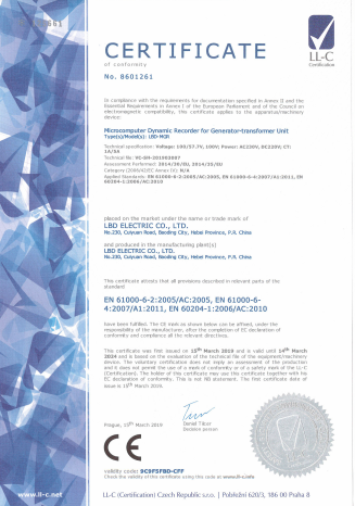 熱烈祝賀我公司“LBD-MGR微機(jī)發(fā)電機(jī)變壓器組故障錄波分析裝置”通過了歐盟CE認(rèn)證,為該產(chǎn)品進(jìn)軍歐盟打下了堅(jiān)實(shí)的基礎(chǔ)。在歐洲經(jīng)濟(jì)區(qū)(歐洲聯(lián)盟、歐洲自由貿(mào)易協(xié)會(huì)成員國,瑞士除外)市場(chǎng)上銷售的商品中,CE標(biāo)志的使用越來越多,LBD-MGR微機(jī)發(fā)電機(jī)變壓器組故障錄波分析裝置加貼CE標(biāo)志表示其符合安全、衛(wèi)生、環(huán)保和消費(fèi)者保護(hù)等一系列歐洲指令所要表達(dá)的要求。