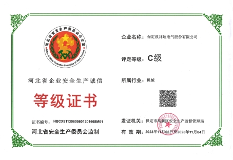 2023年度保定市機(jī)械生產(chǎn)企業(yè)誠(chéng)信評(píng)定結(jié)果揭曉,經(jīng)企業(yè)申報(bào),高新區(qū)安全生產(chǎn)監(jiān)管局評(píng)審、核定,保定浪拜迪電氣股份有限公司獲誠(chéng)信等級(jí)認(rèn)證。