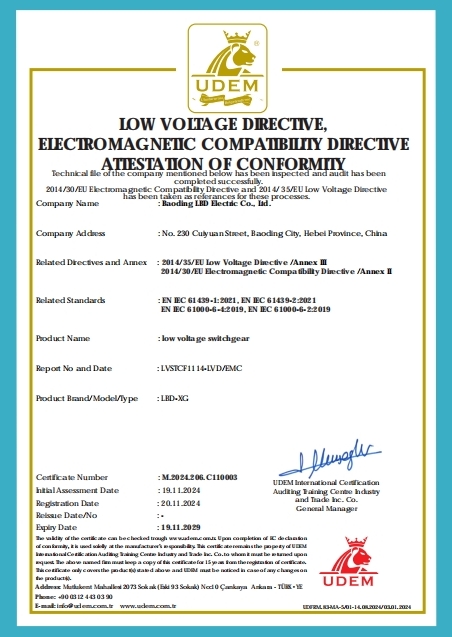 經(jīng)過嚴(yán)格的產(chǎn)品測(cè)試和驗(yàn)證,LBD-XG配電箱成功通過權(quán)威認(rèn)證機(jī)構(gòu)認(rèn)證,獲得歐盟CE認(rèn)證證書。