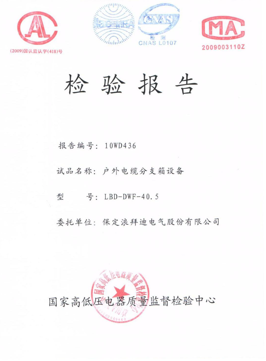 我公司戶外電纜分支箱設(shè)備于2010年7月通過國家高低壓電器質(zhì)量監(jiān)督檢驗中心檢驗。