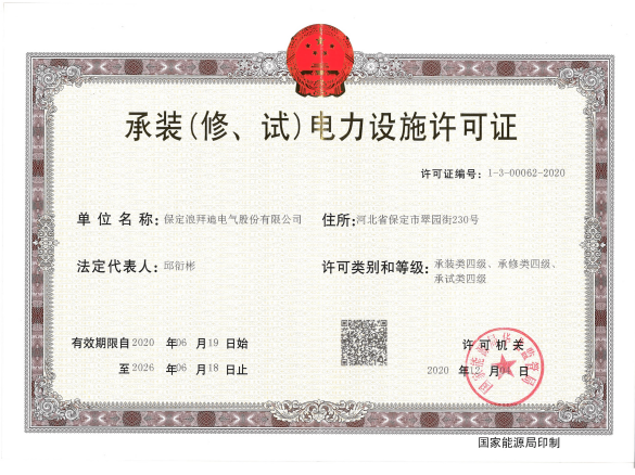 承裝、承修、承試電力設(shè)施許可證